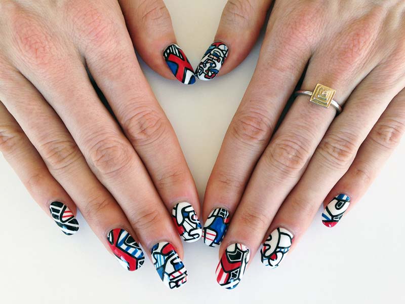 Daniela showed me these amazing nails a couple of nights ago. I’m not one to wear nail polish—it’s a stubby-fingers issue combined with a ridiculous feeling of nail suffocation—or even appreciate it much, but these literal works of art painted on the small fingertip canvases definitely wowed me. Art lover (and nail art lover) Susi Kenna has had her nails painted numerous times in the past two years in the style of paintings by famous artists ranging from Pablo Picasso and Jean Dubuffet, to more recent artists including Shantell Martin and Barry McGee. It’s not clear to me whether Kenna goes in to her various nail artists (Mei Kawajiri, Vanity Projects, and Jessica Washick) armed with art, but it appears that may be the story. In any case, Susi Kenna has documented the nail art on her hands in a tumblr worth a peek.
